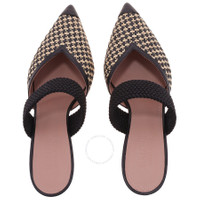 Malone Souliers Ladies Heels. SKU: MANU 45-3-BLACK/BLACK/BLACK. Color: Black/Black/Black. Malone Souliers Manu Raffia Mule Pumps. These mule pumps feature a bicolor woven raffia and elastane fabric with leather trim, a 1.75-inch (45mm) kitten heel, a pointed toe, and a braided band upper, designed in a slide style with a leather outsole and leather lining. Made in Italy. Please visit the brand website for sizing information. INFORMATION Brand: Malone Souliers Model: MANU 45-3-BLACK/BLACK/BLACK Gender: Womens DETAILS Category: Heels Shoe Style: Point Toe Shoe Style: Point Toe Color: Black/Black/Black Shoe Vamp Style: Slip-on Sole Material: Leather Heel Size: 1.75 in / 45 mm ADDITIONAL INFO Jomashop Sku: -U453BLACKBLACKBLACK Department: Shoes