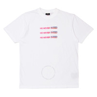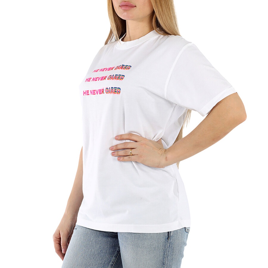 Marcelo Burlon Ladies "He Never Cared" Slogan T-Shirt
