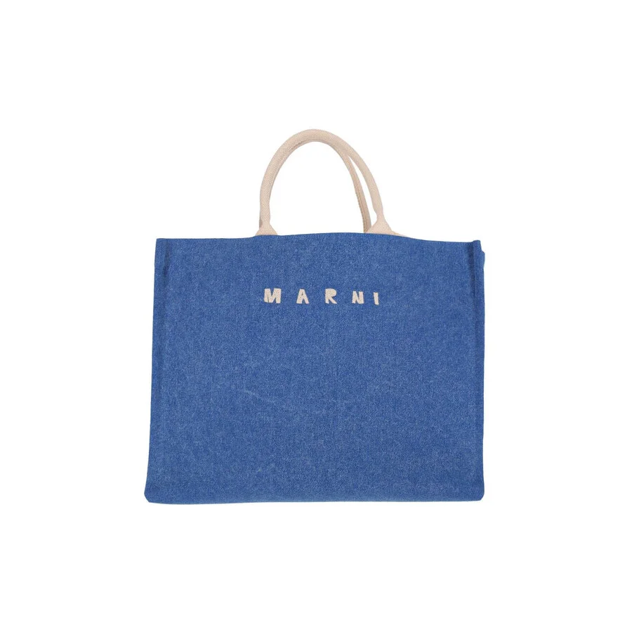 Marni Ladies Tote. SKU: SHMP0078U1 P853600B60. Color: Light Blue. Marni East/West Large Tote Bag. Marni East/West large tote bag in light blue cotton, two short cream fabric handles, two long handles, contrasting logo, button closure, main inner compartment, and inner zipper pocket. Composition: 100% Cotton. GENERAL Color: Light Blue INFORMATION Brand: Marni Gender: Womens Model: SHMP0078U1 P853600B60 ADDITIONAL INFO UPC Code: 8059030644809 Jomashop Sku: Z-BD4W3 Department: Bags Category: Tote Bags