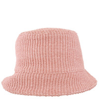 PINK RAFFIA BUCKET HAT WITH LOGO EMBROIDERY