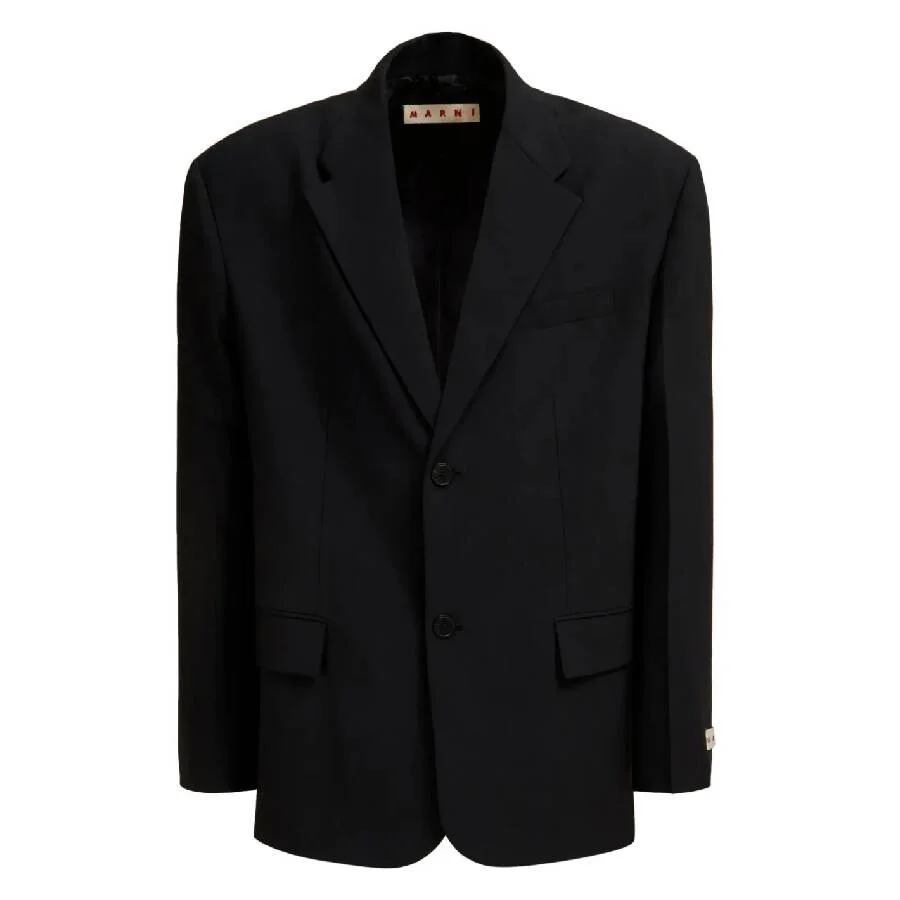 Marni Men's Outerwear. Fashion category: Coats & Jackets. SKU: GUMU0122U0-BLACK. Color: Black. Marni Logo Embroidered Single Breasted Blazer. This blazer features a refined applique logo, notched lapels, and a classic front button fastening, complemented by long sleeves, a chest welt pocket, and two side flap pockets. The straight hem completes the silhouette with a timeless touch of sophistication. 53% Polyester, 43% Virgin wool, 4% Elastane. Made in Italy. GENERAL Size Info: 38 Clothing Size: Men's Apparel Size: 38 Color: Black INFORMATION Brand: Marni Gender: Mens Model: GUMU0122U0-BLACK DETAILS Category: Outerwear Apparel Type: Blazers Material: Polyester, Wool ADDITIONAL INFO UPC Code: 8059030066687 Jomashop Sku: Z-ZWR9C Department: Clothing