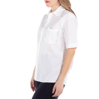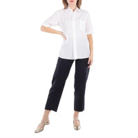 Marni Ladies Tops. Fashion category: Shirts & Blouses. SKU: CAMA0588S0. Color: Lily White. The Marni Loose-Fit Blouse with Pointed Collar is the perfect blend of casual elegance and contemporary style. This oversized shirt is crafted with a comfortable, cool fit, featuring short sleeves and a dropped shoulder design for a relaxed silhouette. The pointed collar adds a touch of sophistication, while the full front button placket and chest pocket with embroidered logo provide both style and practicality. Decorative black stitching along the collar, button placket, and pocket add a modern, refined detail. With a straight hemline and a slightly longer length, this blouse is ideal for creating effortless, chic looks. 100% Cotton. GENERAL Color: Lily White INFORMATION Brand: Marni Gender: Womens Model: CAMA0588S0-LILY WHITE DETAILS Category: Tops Apparel Type: Shirts & Blouses Material: Cotton ADDITIONAL INFO Jomashop Sku: -CAMA0588S0LILYWHITE Department: Clothing