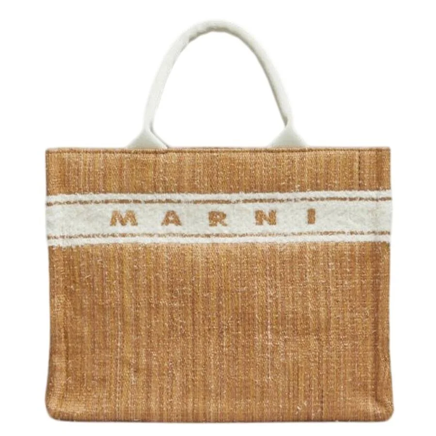 Marni Ladies Tote. SKU: SHMP0077L0. Color: Ecru/White. Marni Small Basket Bag. A playful yet refined everyday companion, the Small Basket Bag by Marni is crafted in a raffia-effect fabric with an East-West silhouette. The front features a needle-tufted jacquard Marni logo, adding signature texture and charm. Designed with cotton top handles and a matching shoulder strap, it includes a fabric-lined interior with a zipped pocket for added functionality. Raffia-effect fabric with jacquard Marni logo. Cotton top handles and shoulder strap. Interior: fabric lining with zipped pocket. Gold-tone hardware. Made in Italy. GENERAL Color: Ecru/White INFORMATION Brand: Marni Gender: Womens Model: SHMP0077L0-ECRU/WHITE ADDITIONAL INFO UPC Code: 8059030048836 Jomashop Sku: Z-RCHPL Department: Bags Category: Tote Bags