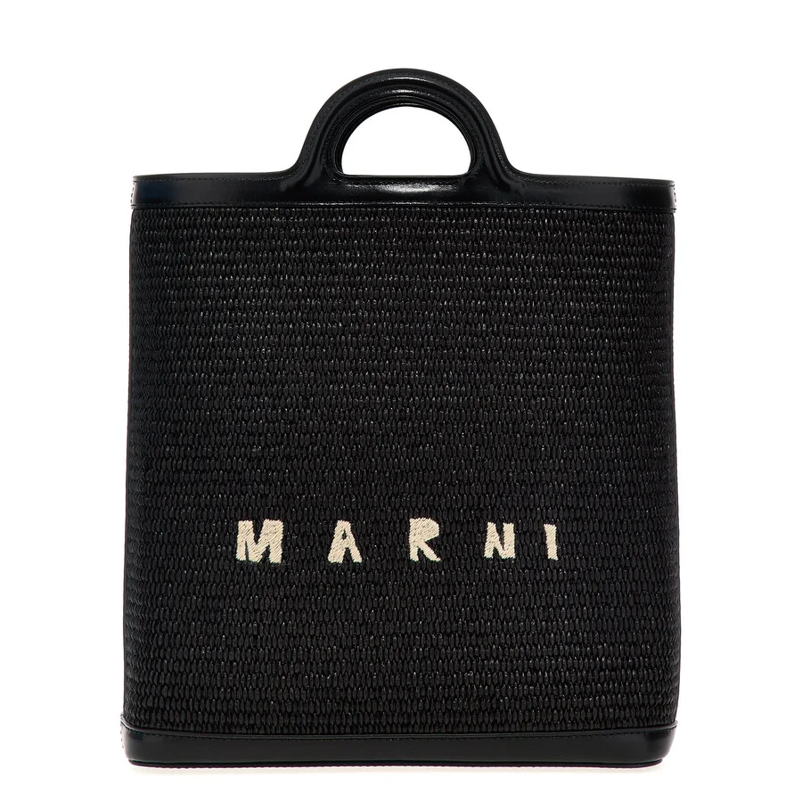 Marni Ladies Tote. SKU: SBMP0179Q0P3860_00N99. Color: Black. Marni Tropicalia Handbag. 52% Cotton, 48% Polyamide Contrast: 100% Cowhide Lining: 100% Cotton Metal parts: 100% Brass Metal parts 2: 94% Zinc, 4% Aluminium, 2% Copper GENERAL Color: Black INFORMATION Brand: Marni Gender: Womens Model: SBMP0179Q0P3860_00N99 ADDITIONAL INFO Jomashop Sku: Z-PR8PC Department: Bags Category: Tote Bags