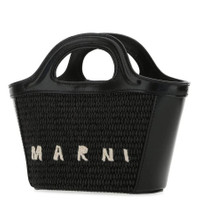 Marni Ladies Tote. SKU: BMMP0067Q0P386000N99. Color: Black. Marni Tropicalia Micro Bag. The Tropicalia Micro Bag blends leather and raffia-effect fabric in a compact, structured silhouette. Designed for versatility, it can be carried by hand or worn crossbody with the removable strap. Features include a leather flap closure, embroidered logo on the front, and gold-tone metal hardware. Finished with a sturdy leather base and cotton lining for added durability. Embroidered front logo. Top handles and removable crossbody strap. Leather flap closure. Leather base and cotton lining. Gold-tone metal hardware. Messurements: H: 7.09" x L: 8.66" x W: 3.94". Handle Drop: 1.57"; Shoulder Strap Length: 53.15". Materials: Body: 52% Cotton, 48% Polyamide. Contrast: 100% Calf Leather. Lining: 100% Cotton. Metal: Brass, Zinc, Aluminum, Copper. Made in Italy. GENERAL Size Info: H: 7.09" x L: 8.66" x W: 3.94" Item Variation: BMMP0067Q0 BLACK Color: Black INFORMATION Brand: Marni Gender: Womens Model: BMMP0067Q0P386000N99 DIMENSIONS Size: Mini ADDITIONAL INFO UPC Code: 8051169805021 Jomashop Sku: Z-L7885 Department: Bags Category: Tote Bags