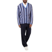 Marni Men's Tops. Fashion category: Cardigans & Sweaters. SKU: CDMG0131Q0-OP. Material: Cotton. Color: Blue. Marni V-Neck Stripe-Pattern Cotton Cardigan. This cotton cardigan features a knitted construction with a vertical stripe pattern, a V-neck, front button fastening, drop shoulders, long sleeves, ribbed trim, and a straight hem. 100% cotton. Made in Italy. GENERAL Color: Blue INFORMATION Brand: Marni Gender: Mens Model: CDMG0131Q0-OP DETAILS Category: Tops Apparel Type: Cardigans & Sweaters Material: Cotton ADDITIONAL INFO Jomashop Sku: -CDMG0131Q0OP Department: Clothing