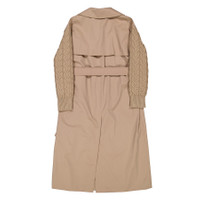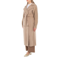 Max Mara Ladies Outerwear. Fashion category: Coats & Jackets. SKU: 1126011600-CAMEL. Color: Camel. Max Mara Cicladi Water-Repellent Gabardine Trench Coat. This double-breasted trench coat is made from a lightweight, water-repellent wool and cotton gabardine blend. It boasts long sleeves in pure wool cable knit, with a relaxed dropped shoulder design. The coat is accented with a traditional lapel collar, side welt pockets, and a storm shield at the back. A centre-back slit enhances its practicality, while the matching belt cinches the waist to shape the silhouette. Inside, the coat is lined with a smooth plain fabric, and it closes with visible buttons. 62% virgin wool, 38% cotton; lining 52% viscose, 48% cotton. Made in Italy. GENERAL Color: Camel INFORMATION Brand: Max Mara Gender: Womens Model: 1126011600-CAMEL DETAILS Category: Outerwear Apparel Type: Coats & Jackets Material: Cotton, Wool ADDITIONAL INFO Jomashop Sku: -1126011600CAMEL Department: Clothing