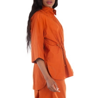 Max Mara Ladies Outerwear. Fashion category: Coats & Jackets. SKU: 2411191022-EARTH. Color: Brown. Max Mara Cotton Tunic Jacket. This cotton poplin tunic jacket features a spread collar, concealed front button fastening, and drop shoulders. It has three-quarter length sleeves, a drawstring waist for an adjustable fit, side slits for ease of movement, and a high-low hem for a modern, flattering silhouette. 100% natural cotton. GENERAL Size Info: 4 Clothing Size: Ladies Apparel Size: 4 Color: Brown INFORMATION Brand: Max Mara Gender: Womens Model: 2411191022-EARTH DETAILS Category: Outerwear Apparel Type: Coats & Jackets Material: Cotton ADDITIONAL INFO UPC Code: 8054943773165 Jomashop Sku: Z-C5ZLY Department: Clothing