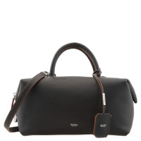 Max Mara Ladies Satchel. SKU: 4516071600-BLACK. Color: Black. Size: 10.24 x 5.91 x 5.12 inches. Max Mara Holdall Black Leather Bowler Bag. Crafted from calfskin, this bag features two top handles and subtly folded sides for a refined silhouette. Designed for versatility, it includes a removable shoulder strap for crossbody wear, a custom key tag, and protective leather feet. The front is finished with signature metal Max Mara lettering, while the suede-lined interior houses a flat M-shaped pocket. A top zip closure and a branded padlock detail on one side complete the sophisticated design. 100% Leather. Made in Italy. GENERAL Size Info: 10.24 x 5.91 x 5.12 inches Color: Black INFORMATION Brand: Max Mara Gender: Womens Model: 4516071600-BLACK DETAILS Material: Leather Closure: Zip-Up ADDITIONAL INFO UPC Code: 8056243708823 Jomashop Sku: Z-S6UQK Department: Bags Category: Satchels