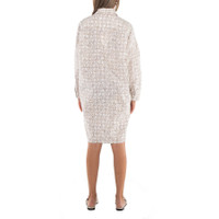 Max Mara Ladies Dresses. Fashion category: Casual Dresses. SKU: BEVANDA 001. Color: White. Max Mara Ladies White Bevanda Monogram Shirt Minidress. Crafted from pure cotton poplin with an all-over small polka dot MaxMaraGram print, this dress features a mandarin collar and long sleeves with dropped shoulders. It is finished with a front pocket, side slits, and an asymmetric, rounded hem. The dress has a concealed front fastening and a straight-cut silhouette for a modern, refined look. GENERAL Color: White INFORMATION Brand: Max Mara Gender: Womens Model: BEVANDA 001 DETAILS Category: Dresses Apparel Type: Casual Dresses ADDITIONAL INFO Jomashop Sku: -BEVANDA001 Department: Apparel