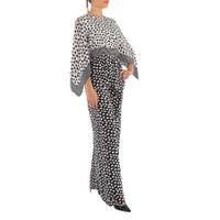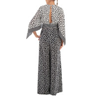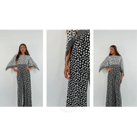 Max Mara Ladies Set. Fashion category: Jumpsuits & Rompers. SKU: ORIGANO 001. Color: White Black. Max Mara Ladies White Black Origano Printed Silk Jumpsuit. This jumpsuit showcases flowing shawl sleeves and a bold geometric pattern, with a teardrop closure at the open back. The design elegantly drapes into floor-sweeping wide legs, creating a sophisticated silhouette. 100% silk. Made in Italy. GENERAL Color: White Black INFORMATION Brand: Max Mara Gender: Womens Model: ORIGANO 001 DETAILS Category: Set Apparel Type: Jumpsuits & Rompers ADDITIONAL INFO Jomashop Sku: -ORIGANO001 Department: Apparel