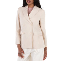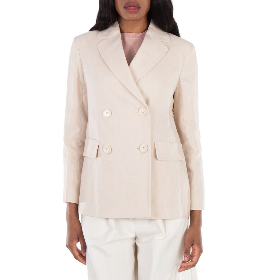 Max Mara Ladies Outerwear. Fashion category: Coats & Jackets. SKU: LAURA004. Color: Beige. Max Mara Laura Double-Breasted Linen Blazer. A linen blazer featuring notch lapels, long sleeves, a spread collar, flap pockets, double-breasted design, and a relaxed fit. 100% linen. GENERAL Color: Beige INFORMATION Brand: Max Mara Gender: Womens Model: LAURA004 DETAILS Category: Outerwear Apparel Type: Coats & Jackets Material: Linen ADDITIONAL INFO Jomashop Sku: -LAURA004 Department: Clothing