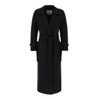 Max Mara Ladies Outerwear. Fashion category: Coats & Jackets. SKU: MAGIA004. Color: Black. Max Mara Magia Long Cashmere Coat. Crafted from cashmere, this jacket features two patch pockets in tonal shearling at the front. It has lapels, strap detailing on the sleeves, and a double-breasted closure with a detachable tonal fabric belt that ties at the waist. A central slit at the back adds to its design, and the jacket is unlined. 100% Cashmere. Made In Italy. GENERAL Color: Black INFORMATION Brand: Max Mara Gender: Womens Model: MAGIA004 DETAILS Category: Outerwear Apparel Type: Coats & Jackets Material: Cashmere ADDITIONAL INFO Jomashop Sku: -MAGIA004 Department: Clothing