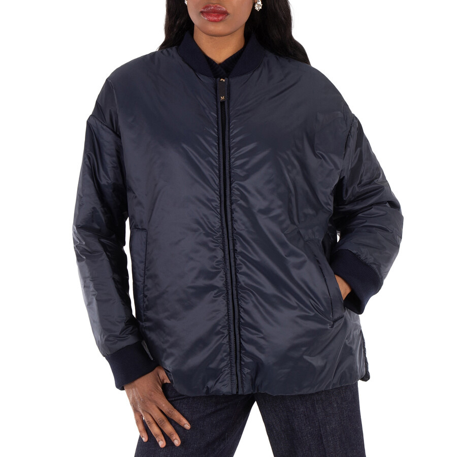 Max Mara Ladies Outerwear. Fashion category: Coats & Jackets. SKU: DANISH008. Color: Midnight. Max Mara Water Repellent Danish Bomber Jacket. This Danish jacket features a band collar, long sleeves, a front zip closure, side welt pockets, a water-repellent finish, and a lined interior. Shell & lining: 100% polyester; quilted trim: 48% polyester, 48% camel wool, 4% silk; knitted trim: 84% virgin wool, 15% polyamide, 1% elastane. Made in Italy. GENERAL Color: Midnight INFORMATION Brand: Max Mara Gender: Womens Model: DANISH008 DETAILS Category: Outerwear Apparel Type: Coats & Jackets Material: Polyester ADDITIONAL INFO Jomashop Sku: -DANISH008 Department: Clothing