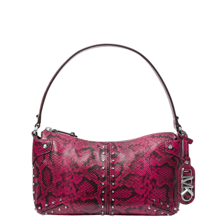 Michael Kors Ladies Shoulder Bag. SKU: 32H3SATU3E647. Color: Fuchsia. Size: W:11" x H:6.75" x D:2.5". Michael Kors Astor Large Studded Leather Shoulder Bag. This shoulder bag features snake-embossed leather and leather details, with interior features including a back zip pocket and a front slip pocket, a polyester lining, and a zip fastening. 100% Leather, Lining: 100% polyester. GENERAL Size Info: W:11" x H:6.75" x D:2.5" Color: Fuchsia INFORMATION Brand: Michael Kors Gender: Womens Model: 32H3SATU3E647 DETAILS Material: Leather, Polyester Closure: Zip-Up ADDITIONAL INFO UPC Code: 196237345417 Jomashop Sku: Z-CHSJW Department: Bags Category: Shoulder Bag