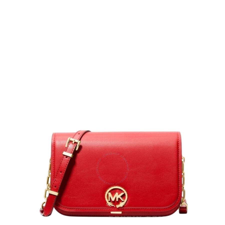 Michael Kors Ladies Crossbody. SKU: 30S4GD8M2O-607. Color: Red. Size: W:15.5" x H:6.25" x D:3". Michael Kors Delancey Medium Leather Messenger Bag. This messenger bag features logo hardware, a matching motif adorning the interior flap, a front compartment, a back zip pocket, a chain-link strap, and a snap fastening. 100% leather, Lining: 100% polyester. GENERAL Size Info: W:15.5" x H:6.25" x D:3" Color: Red INFORMATION Brand: Michael Kors Gender: Womens Model: 30S4GD8M2O-607 DETAILS Material: Leather, Polyester Closure: Snap DIMENSIONS Size: Medium ADDITIONAL INFO UPC Code: 196237765574 Jomashop Sku: Z-FB4V5 Department: Bags Category: Messenger