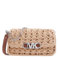 Michael Kors Ladies Shoulder Bag. SKU: 30S3S7PC2W969. Size: 10.75"W X 6.25"H X 4"D. Michael Kors Ladies Parker Medium Woven Straw Shoulder Bag. The Parker shoulder bag is woven from straw and features two interchangeable straps, one leather and the other chain-link, an exterior back snap pocket, a main compartment with a back zip pocket and a front slip pocket, a snap fastening and complemented by the signature Empire Logo hardware for added polish. GENERAL Size Info: 10.75"W X 6.25"H X 4"D Brand Type: Designer INFORMATION Brand: Michael Kors Gender: Womens Model: 30S3S7PC2W969 DETAILS Material: Straw Closure: Snap ADDITIONAL INFO UPC Code: 196237764713 Jomashop Sku: Z-Y3FE5 Department: Bags Category: Shoulder Bag