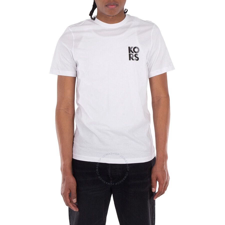 Michael Kors Men's Tops. Fashion category: T-Shirts & Henleys. SKU: CS351I8FV4-100. Color: White. Michael Kors Logo Print T-Shirt. This T-shirt features a small logo graphic on the front and a larger one on the back. It has a crewneck, short sleeves, 100% cotton. GENERAL Brand Type: Designer Color: White INFORMATION Brand: Michael Kors Gender: Mens Model: CS351I8FV4-100 DETAILS Category: Tops Apparel Type: T-Shirts & Henleys Material: Cotton ADDITIONAL INFO Jomashop Sku: -CS351I8FV4100 Department: Clothing
