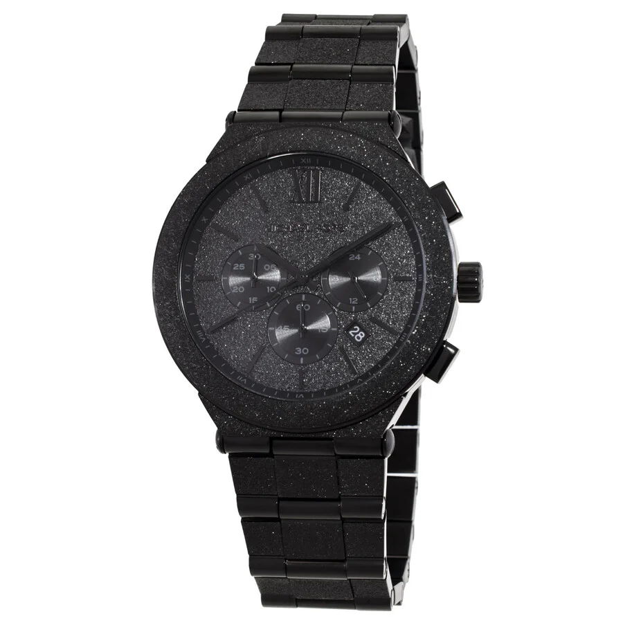 Black stainless steel case and bracelet. Fixed black stainless steel bezel. Black dial with index-Roman numeral hour markers. Minute markers around the outer rim. Dial Type: Analog. Date display between 4 and 5 o'clock position. Chronograph - three sub-dials displaying: 60 second, 30 minute and 24 hour. Quartz movement. Scratch resistant mineral crystal. Pull / push crown. Solid case back. Round case shape, case size: 44 mm. Fold over clasp with a safety release. Water resistant at 50 meters / 165 feet. Functions: chronograph, date, hour, minute, second. Billie Series. Casual watch style. Michael Kors Oversized Billie Frosted Chronograph Quartz Men's Watch MK9223. GENERAL Box Type: Original Box Brand Type: Designer CASE Case Diameter: 44 mm Case Material: Stainless Steel Case Shape: Round Case Back: Solid BAND Band Material: Stainless Steel Band Type: Bracelet Band Color: Black Clasp: Fold Over with Safety Release DIAL Dial Color: Black Type: Analog Crystal: Scratch Resistant Mineral Dial Markers: Index-Roman Numeral Second Markers: Minute Markers around the outer rim Sub Dials: Three - 60 Second, 30 Minute and 24 Hour Bezel: Fixed Bezel Color: Black Bezel Material: Stainless Steel Crown: Pull / Push INFORMATION Brand: Michael Kors Series: Billie Collection Name: Billie Gender: Mens Model: MK9223 Movement: Quartz FEATURES Water Resistance: 50 meters / 165 feet Calendar: Date display between 4 and 5 o'clock position Functions: Chronograph, Date, Hour, Minute, Second Watch Features: Analog, Stainless Steel, Chronograph ADDITIONAL INFO Watch Style: Casual Warranty: 2 Year Jomashop Warranty UPC Code: 807320009771 Jomashop Sku: MK9223 Department: Watches
