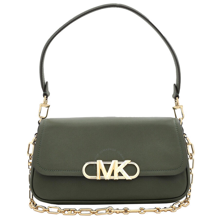 Michael Kors Ladies Shoulder Bag. SKU: 30F2G7PC2L-386. Color: Amazon Green. Michael Kors Parker Leather Shoulder Bag. This shoulder bag features a flap closure with Empire hardware and a convertible design with two interchangeable straps: one leather and one chain-link. It has a snap fastening, an exterior back snap pocket, and interior details including a back zip pocket and a front slip pocket. 100% Leather. 100% Polyester. GENERAL Size Info: One Size Color: Amazon Green Upper Material: Leather Lining Material: Polyester INFORMATION Brand: Michael Kors Gender: Womens Model: 30F2G7PC2L-386 ADDITIONAL INFO UPC Code: 196237148896 Jomashop Sku: Z-W9FFZ Department: Bags Category: Shoulder Bag