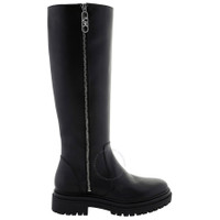 Michael Kors Ladies Boots. SKU: 40F3RGFB5L-001. Color: Black. Michael Kors Regan Leather Knee-High Boots. The Regan boots feature a knee-high design with thick rubber tread soles for durability in inclement weather, a zip closure for a snug fit, a 1.75" heel height, a 1" platform, and a rubber heel. 100% leather. Lining: polyester. Sole: rubber. Please visit the brand website for sizing information. INFORMATION Brand: Michael Kors Model: 40F3RGFB5L-001 Gender: Womens DETAILS Category: Boots Shoe Style: Knee-High Boots Shoe Style: Knee-High Boots Color: Black Shoe Vamp Style: Slip-on Upper Material: Leather Sole Material: Rubber ADDITIONAL INFO Jomashop Sku: -40F3RGFB5L001 Department: Shoes