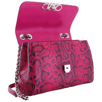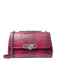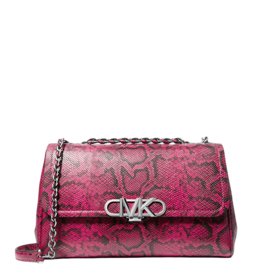 Michael Kors Ladies Shoulder Bag. SKU: 30H3S7PS3E647. Color: Fuchsia. Size: W:11.25" x H:7.75" x D:3.75". Michael Kors Snake Embossed Leather Shoulder Bag. This shoulder bag features a braided chain strap, a snake-embossed finish, bold Empire hardware on the front, and a back snap slip pocket, with interior details including a back zip pocket, front slip pockets, and a center zip compartment, all secured with a snap fastening. 100% leather, Lining: 100% polyester. GENERAL Size Info: W:11.25" x H:7.75" x D:3.75" Color: Fuchsia INFORMATION Brand: Michael Kors Gender: Womens Model: 30H3S7PS3E647 DETAILS Material: Leather, Polyester Closure: Snap DIMENSIONS Size: Extra-Large ADDITIONAL INFO UPC Code: 196237355775 Jomashop Sku: Z-8529A Department: Bags Category: Shoulder Bag
