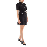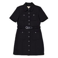 Michael Kors Ladies Dresses. Fashion category: Casual Dresses. SKU: MR381GJ3GZ-001. Color: Black. Michael Kors Stretchy Crepe Short Sleeve Belted Utility Dress. This dress features a logo-embossed belted waist, a classic collar, front button fastening, short sleeves, and four front patch pockets. 92% Polyester, 8% Elastane, Lining: 100% Polyester. Made in China. GENERAL Size Info: 2 Clothing Size: Ladies Apparel Size: 2 Color: Black INFORMATION Brand: Michael Kors Gender: Womens Model: MR381GJ3GZ-001 DETAILS Category: Dresses Apparel Type: Casual Dresses Material: Elastane, Polyester ADDITIONAL INFO UPC Code: 196163680507 Jomashop Sku: Z-DR6QC Department: Clothing