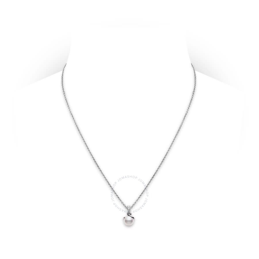 This 18K white gold Mikimoto necklace features an A+ quality 8mm white cultured Akoya pearl which is accented with a white gold twist at the top of the pearl and is suspended from a diamond bail, which totals 0.05 carats, and hangs on an 18" chain that can also be worn at 16." The Twist Collection features organic, free-form designs intended to showcase the pearl from all angles. GENERAL Color: White INFORMATION Brand: Mikimoto Gender: Womens Model: MPA10025ADXW DETAILS Necklaces: 1 Band Material : White Gold Metal Stamp: 18K Stone Type: Pearl ADDITIONAL INFO Jomashop Sku: Y-A29RJ Department: Jewelry Category: Necklaces Choose a Size: 18 Inches