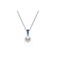 Mikimoto Akoya Pearl & Blue Sapphire Pendant Necklace in 18K White Gold 8mm