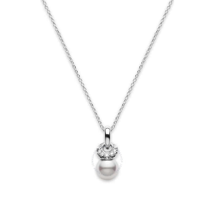 Mikimoto Necklace Akoya Pearl White 8.5mm A+ (PPE565DW). 18kt white gold necklace with 1 white Akoya pearl of 8.5mm of A+ quality and 0.10ct of diamonds. Necklace 16 inches in length. GENERAL Color: White INFORMATION Brand: Mikimoto Gender: Womens Model: PPE565DW DETAILS Necklaces: 1 Band Material : White Gold Metal Stamp: 18K Stone Type: Pearl ADDITIONAL INFO Jomashop Sku: Y-A2C7P Department: Jewelry Category: Necklaces Choose a Size: 16 Inches