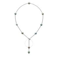 Cultered black south sea necklace from Mikimoto. Features a 8x8.99mm cultured multi-colored pearls fixed to an 18K white gold chain. A round brilliant cut diamond pave clip holds the lariat style necklace in place. GENERAL Box: No Papers: No Color: Black INFORMATION Brand: Mikimoto Gender: Womens Model: PPL351KDW9 DETAILS Size Info: 19 inches Necklaces: Y- Necklace Material : White Gold Metal Stamp: 18K Stone Type: Pearl Stone Origin: Natural ADDITIONAL INFO Jomashop Sku: Y-A5DSH Department: Jewelry Category: Necklaces