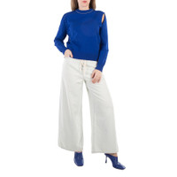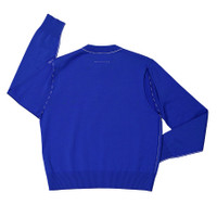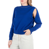 MM6 Ladies Tops. Fashion category: Cardigans & Sweaters. SKU: S62HL0025-BLUETTE. Color: Blue. MM6 Crewneck Cutout Jumper. This jumper is crafted from smooth knit fabric and features a straight cut with a crewneck and long sleeves. The cuffs and hem are finished with comfortable elastic drawstrings, and the design includes cutout detailing for added style. 56% Polyester, 44% Viscose GENERAL Color: Blue INFORMATION Brand: Mm6 Gender: Womens Model: S62HL0025-BLUETTE DETAILS Category: Tops Apparel Type: Cardigans & Sweaters Material: Polyester, Viscose ADDITIONAL INFO Jomashop Sku: -S62HL0025BLUETTE Department: Clothing