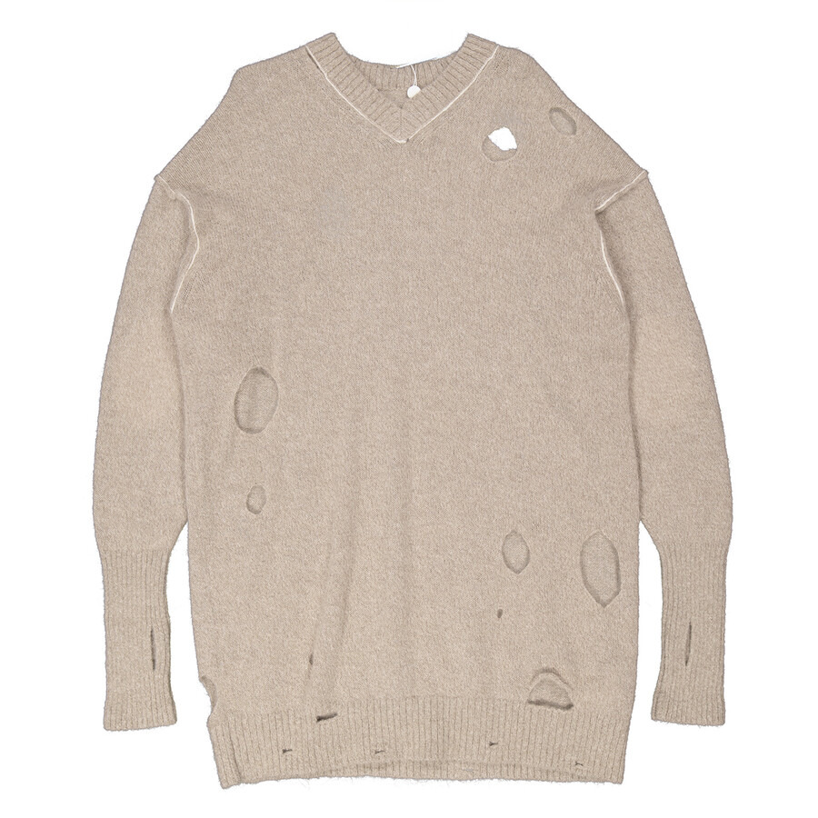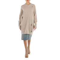 MM6 Ladies Tops. Fashion category: Cardigans & Sweaters. SKU: S52HN0003 S18289 961. Color: Beige. MM6 Ladies Beige Distressed-Effect Knitted Jumper. Crafted from an alpaca blend, this sweater features a knitted construction, distressed effect, two-finger design, V-neck, long sleeves with drop shoulder, and finished with ribbed edge. Alpaca 55%, Polyamide 34%, Cotton 11% GENERAL Color: Beige INFORMATION Brand: Mm6 Gender: Womens Model: S52HN0003 S18289 961 DETAILS Category: Tops Apparel Type: Cardigans & Sweaters ADDITIONAL INFO Jomashop Sku: -S52HN0003S18289961 Department: Apparel