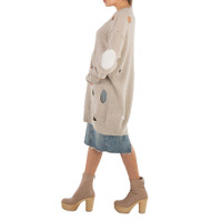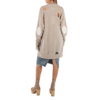 MM6 Ladies Beige Distressed-Effect Knitted Jumper