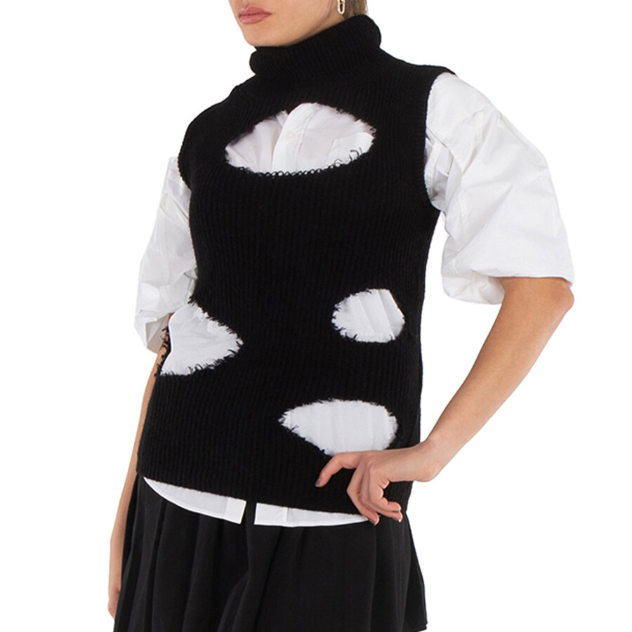 MM6 Maison Margiela Ladies Tops. Fashion category: T-Shirts & Henleys. SKU: S52NC0322. Color: Black. MM6 Maison Margiela Distressed Roll Neck Sweater. Stretch-knit roll neck sweater with raw edge cut-outs, ribbed trims, and a roll neck. 39% Cotton, 25% Acrylic, 18% Polyamide. ADDITIONAL INFO Department: Apparel Jomashop Sku: -S52NC0322BLACK DETAILS Apparel Type: T-Shirts & Henleys Material: Cotton, Polyamide Category: Tops INFORMATION Gender: Womens Brand: Mm6 Maison Margiela Model: S52NC0322 GENERAL Color: Black