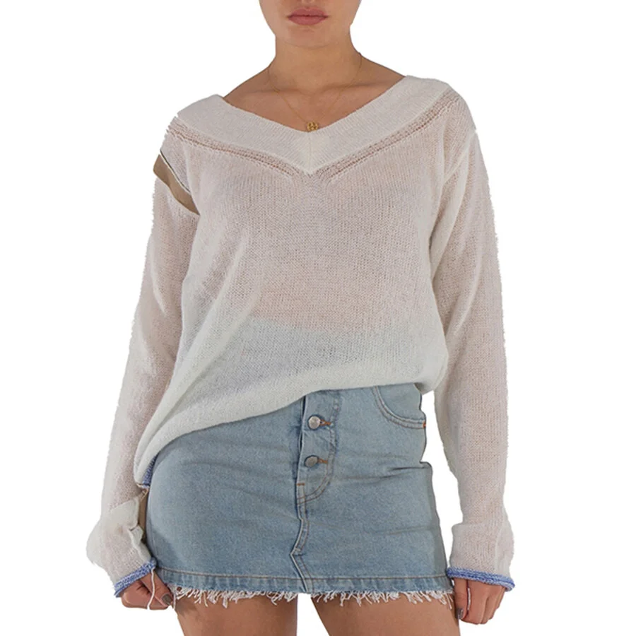 MM6 Maison Margiela Ladies Tops. Fashion category: Cardigans & Sweaters. SKU: S52HN0002. Color: White. Mm6 Maison Margiela V-Neck Sweater. Kknitted, lightweight knit, piped trims, two-tone, v-neck, long sleeves.37% Acrylic, 27% Polyamide, 14% Mohair wool, 14% Wool, 8% Cotton GENERAL Size Info: Small Apparel Size: Ladies Apparel Size: S Color: White INFORMATION Brand: Mm6 Maison Margiela Gender: Womens Model: S52HN0002 DETAILS Category: Tops Apparel Type: Cardigans & Sweaters Material: Cotton, Mohair, Polyamide, Wool ADDITIONAL INFO UPC Code: 8053460162766 Jomashop Sku: Z-5EEVM Department: Apparel