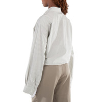 MM6 Ladies Tops. Fashion category: Casual Button-Downs. SKU: S52DT0039-004F-IGUANA. Color: Iguana. MM6 Striped Oversized Long-Sleeved Shirt. This oversized shirt features a classic collar, all-over stripes, a chest pocket, button closure, and buttoned cuffs with long sleeves. 100% cotton. Made in Italy. GENERAL Color: Iguana INFORMATION Brand: Mm6 Gender: Womens Model: S52DT0039-004F-IGUANA DETAILS Category: Tops Apparel Type: Casual Button-Downs Material: Cotton ADDITIONAL INFO Jomashop Sku: -S52DT0039004FIGUANA Department: Clothing