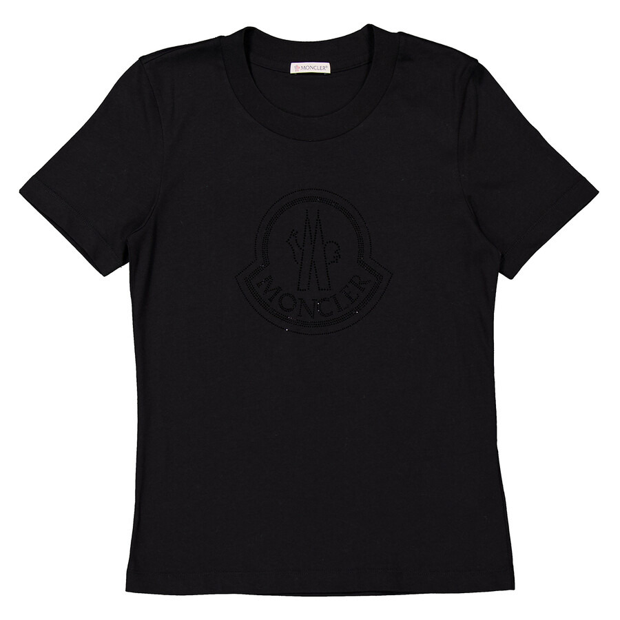 Moncler Ladies Tops. Fashion category: T-Shirts & Henleys. SKU: I20938C00034-829FB-999. Color: Black. Moncler Embellished- Crystal Logo T-Shirt. This t-shirt is made from cotton and features a logo print on the front with crystal embellishments, a round neck, short sleeves and a straight hem. 100% cotton. GENERAL Brand Type: Designer Color: Black INFORMATION Brand: Moncler Gender: Womens Model: I20938C00034-829FB-999 DETAILS Category: Tops Apparel Type: T-Shirts & Henleys Material: Cotton ADDITIONAL INFO Jomashop Sku: -20938C00034829FB999 Department: Clothing