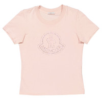 Moncler Ladies Tops. Fashion category: T-Shirts & Henleys. SKU: I20938C00034-829FB-514. Color: Pink. Moncler Embellished Logo Short Sleeve T-Shirt. This cotton t-shirt features a logo print on the front with crystal embellishments, a round neck, short sleeves, and a straight hem. 100% cotton. Made in Turkey. GENERAL Brand Type: Designer Size Info: XX-Small Clothing Size: Ladies Apparel Size: XXS Color: Pink INFORMATION Brand: Moncler Gender: Womens Model: I20938C00034-829FB-514 DETAILS Category: Tops Apparel Type: T-Shirts & Henleys Material: Cotton ADDITIONAL INFO UPC Code: 8053875910259 Jomashop Sku: Z-5ASZP Department: Clothing