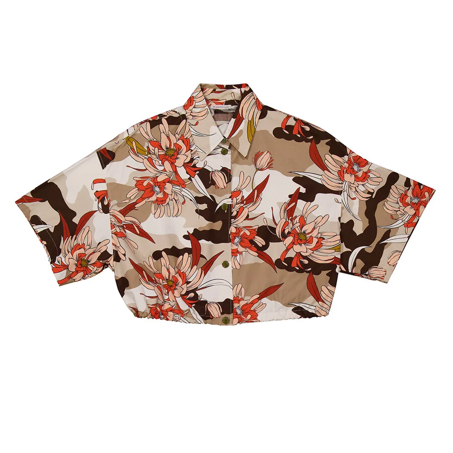 Moncler Ladies Tops. Fashion category: T-Shirts & Henleys. SKU: I10932F00010-596S1-F84. Moncler Floral-Print Cropped Shirt A blend of utility and bold design, this cropped shirt features an all-over floral camouflage print in earthy brown, purple, and green tones. Designed with wide short sleeves, a concealed press-stud front, and a drawstring hem for an adjustable fit. Material: 100% Cotton. Made in Italy GENERAL Size Info: 4 Brand Type: Designer Clothing Size: Ladies Apparel Size: 4 Color: Blue INFORMATION Brand: Moncler Gender: Womens Model: I10932F00010-596S1-F84 DETAILS Category: Tops Apparel Type: T-Shirts & Henleys ADDITIONAL INFO UPC Code: 8053875162429 Jomashop Sku: Z-A85GP Department: Clothing