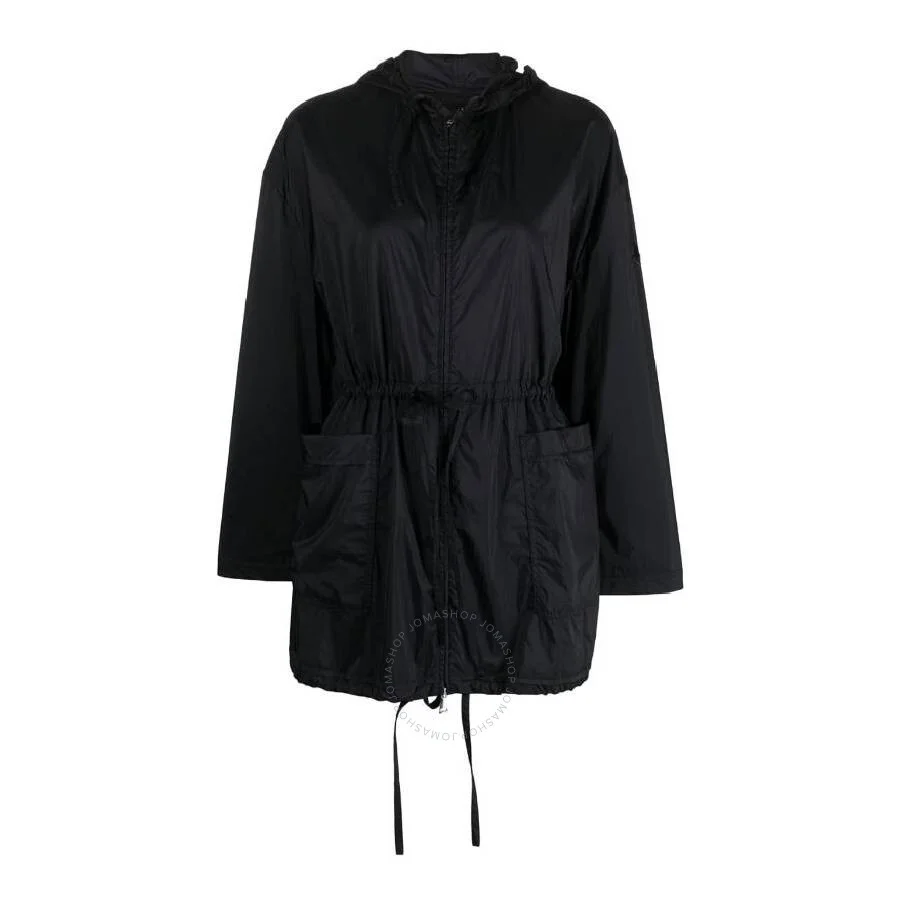Moncler Ladies Outerwear. Fashion category: Coats & Jackets. SKU: I10931A00138-M2760-999. Color: Black. Moncler Hooded Long Sleeve Rain Jacket. This jacket features a water-repellent classic hood, a front two-way zip fastening, an elasticated drawstring waistband, two front patch pockets, long sleeves, a logo patch on the sleeve and a straight hem. Outer: Polyamide 100%; Lining: Polyamide 100%, Cotton 100%. Made in Romania. GENERAL Color: Black INFORMATION Brand: Moncler Gender: Womens Model: I10931A00138-M2760-999 DETAILS Category: Outerwear Apparel Type: Coats & Jackets Material: Cotton, Polyamide ADDITIONAL INFO Jomashop Sku: -10931A00138M2760999 Department: Clothing