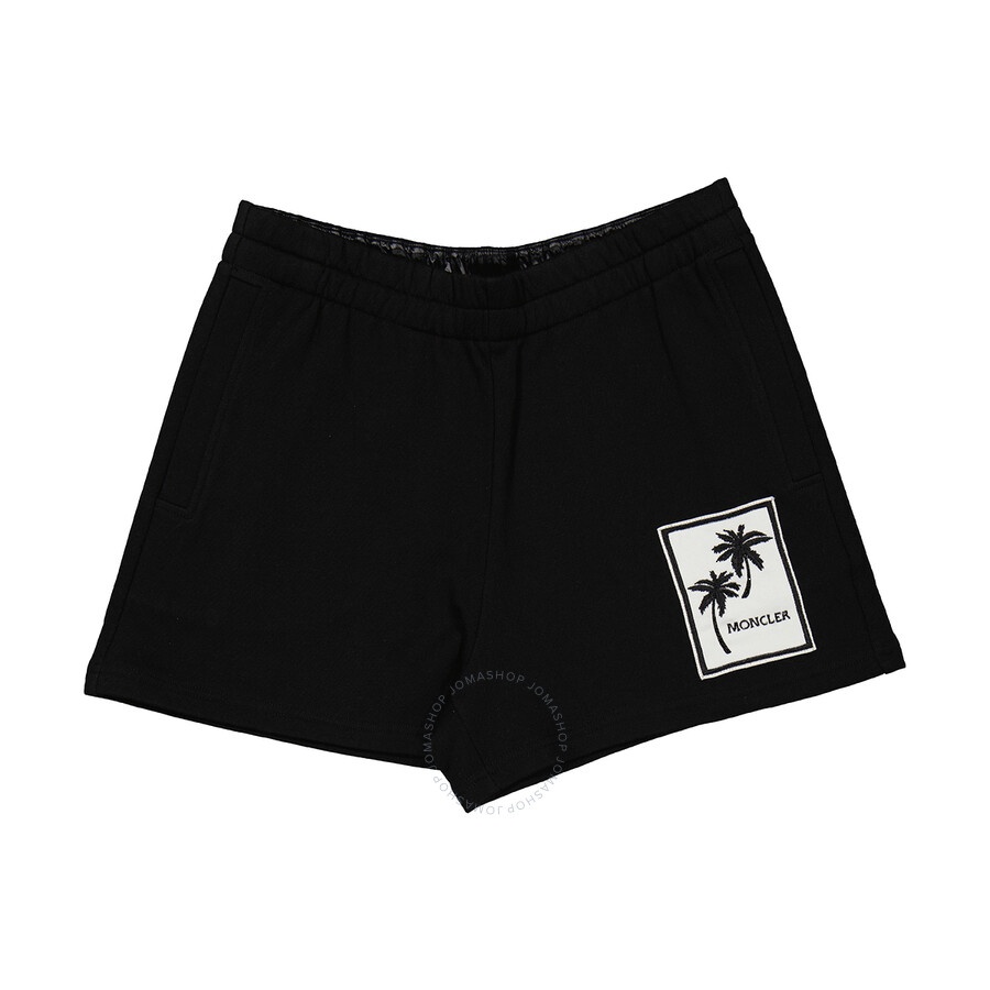 Moncler Ladies Bottoms. Fashion category: Shorts. SKU: H10938H00024-899M1-999. Color: Black. Moncler Ladies Black Palm Motif Logo Shorts. The Moncler shorts feature an elasticated waistband, two diagonal pockets to the sides and palm logo embroidery. 100% Polyamide, 100% Cotton. GENERAL Color: Black INFORMATION Brand: Moncler Gender: Womens Model: H10938H00024-899M1-999 DETAILS Category: Bottoms Apparel Type: Shorts ADDITIONAL INFO Jomashop Sku: -10938H00024899M1999 Department: Apparel