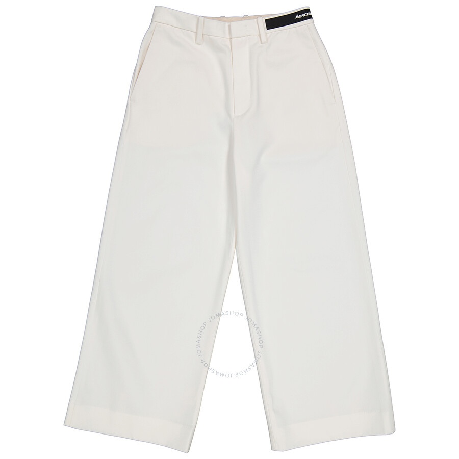 SKU: F10932A70200-V0064-034. Crafted from cotton, this dress pants from Moncler features a concealed zip and hook and eye fastening, silicone patch with Moncler lettering on left side of waist, high waisted, a cropped length, waistband with belt loops, pressed creases to the front and rear, rear welt pockets, side slip pockets and a wide leg. GENERAL Color: Ivory INFORMATION Brand: Moncler Gender: Womens Model: F10932A70200-V0064-034 DETAILS Category: Bottoms Apparel Type: Pants & Leggings ADDITIONAL INFO Jomashop Sku: -10932A70200V0064034 Department: Apparel