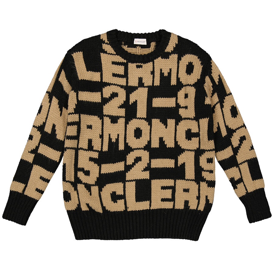This sweater from Moncler features long sleeves, a crew neck, ribbed cuffs and hem, a relaxed fit and a embroidered logo pattern is brown. Materials: 60% Acrylic, 30% Wool, 10% Alpaca. GENERAL Color: Black INFORMATION Brand: Moncler Gender: Womens Model: E20939099100-A9030-999 DETAILS Category: Tops Apparel Type: Cardigans & Sweaters ADDITIONAL INFO Jomashop Sku: -20939099100A9030999 Department: Apparel