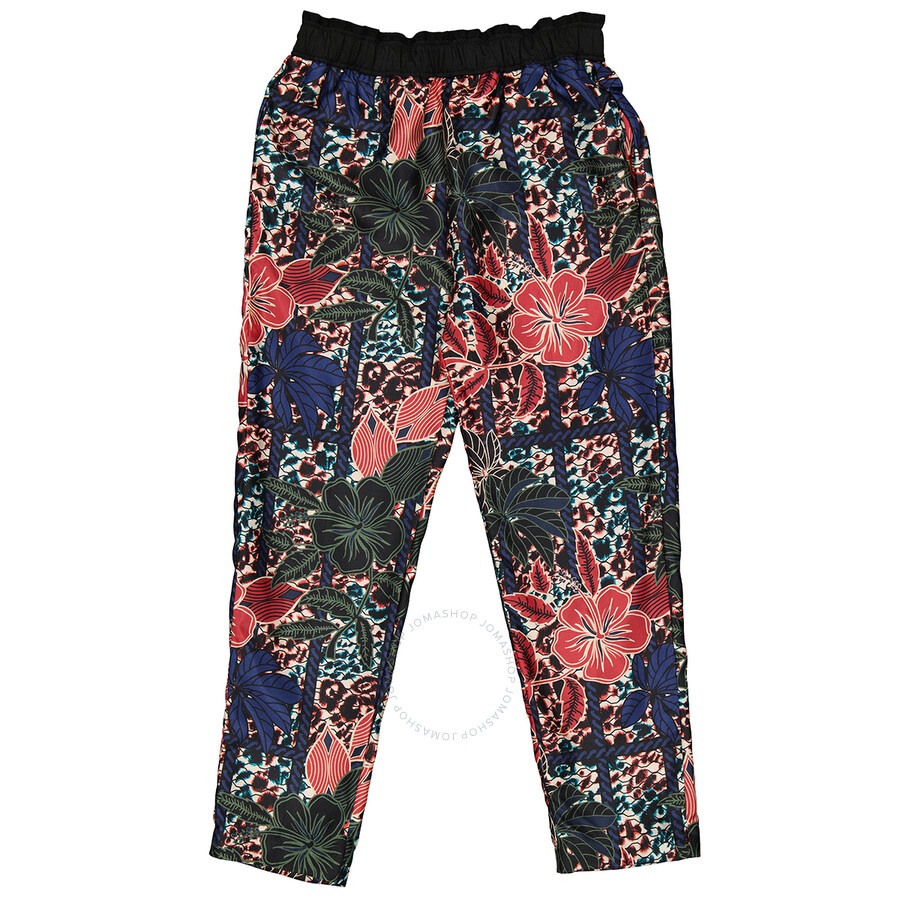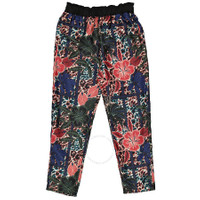 Moncler Ladies Floral Print Cropped Silk Trousers