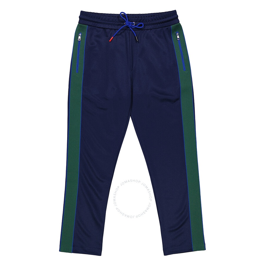 Moncler Men's Bottoms. Fashion category: Pants & Leggings. SKU: H10918H00006-899A0-778. Color: Navy. Moncler Men's Navy Striped Drawstring Sweatpants. This Moncler pants feature an elasticated waistband, elasticated cuffs, two diagonal pockets to the sides, 1 back welt pocket and felt Moncler logo patch. 100% Polyester. GENERAL Color: Navy INFORMATION Brand: Moncler Gender: Mens Model: H10918H00006-899A0-778 DETAILS Category: Bottoms Apparel Type: Pants & Leggings ADDITIONAL INFO Jomashop Sku: -10918H00006899A0778 Department: Apparel