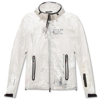 Moncler Men's Outerwear. Fashion category: Coats & Jackets. SKU: G209Q1A00003-54AS5-032. Color: White. Moncler Men's White Day-Namic Crinkled-Shell Hooded Rain Jacket. The Day-Namic Moncler jacket features a front zip fastening, long sleeves, contrasting trim, transparent design, logo print at the chest and a drawstring hood. 100% Polyethylene. GENERAL Color: White INFORMATION Brand: Moncler Gender: Mens Model: G209Q1A00003-54AS5-032 DETAILS Category: Outerwear Apparel Type: Coats & Jackets ADDITIONAL INFO Jomashop Sku: -209Q1A0000354AS5032 Department: Apparel