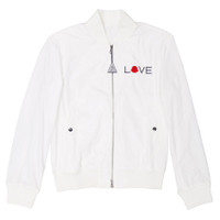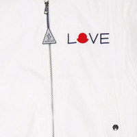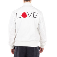 Moncler Men's Outerwear. Fashion category: Coats & Jackets. SKU: I10911A00140-54A91-034. Color: White. Moncler White Love Embroidery Bomber Jacket. This jacket features a sleek, minimalist design with a full-zip front and ribbed cuffs and hem. The standout detail is the embroidered "LOVE" text on the chest, incorporating a red hat as part of the lettering, adding a unique and playful touch. With two buttoned pockets for functionality. GENERAL Brand Type: Designer Color: White INFORMATION Brand: Moncler Gender: Mens Model: I10911A00140-54A91-034 DETAILS Category: Outerwear Apparel Type: Coats & Jackets ADDITIONAL INFO Jomashop Sku: -10911A0014054A91034 Department: Clothing
