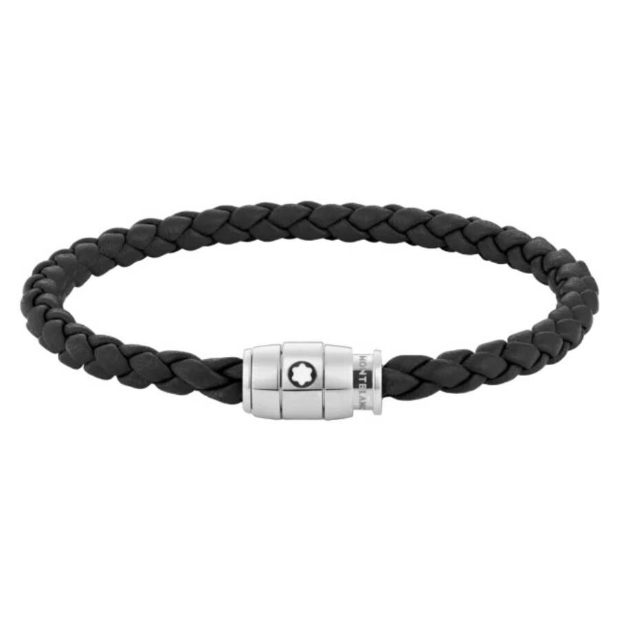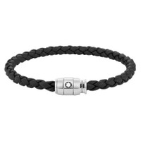MontBlanc Bracelets. Color: Black. Montblanc Black Woven Leather Bracelet. This bracelet is crafted from woven black leather and features a polished stainless steel clasp. A single steel ring bearing the iconic Montblanc emblem adds a refined finishing touch to the design. Material: Leather;Stainless Steel. GENERAL Color: Black INFORMATION Brand: Montblanc Gender: Mens Model: MB130897 DETAILS Ring Style: Fashion ADDITIONAL INFO Jomashop Sku: -MB130896N Department: Jewelry Category: Bracelets