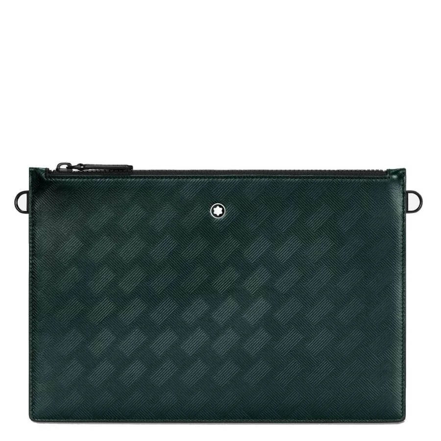 MontBlanc Men's Pouch. SKU: 129985. Color: British Green. Montblanc Extreme 3.0 British Green Leather Pouch with Strap. Crafted from embossed leather in a distinctive British Green hue, this Montblanc Extreme 3.0 clutch combines refined elegance with modern functionality. Its slim silhouette is ideal for carrying essentials, while the detachable strap offers versatile styling options. Finished with subtle detailing and Montblanc’s signature craftsmanship, it’s a sophisticated companion for business or casual occasions. Dimensions: 11.8" W × 0.4" D × 7.9" H. GENERAL Size Info: 11.8" W × 0.4" D × 7.9" H Color: British Green INFORMATION Brand: Montblanc Gender: Mens Model: 129985 ADDITIONAL INFO UPC Code: 4062037092959 Jomashop Sku: MB129985 Department: Bags Category: Pouch